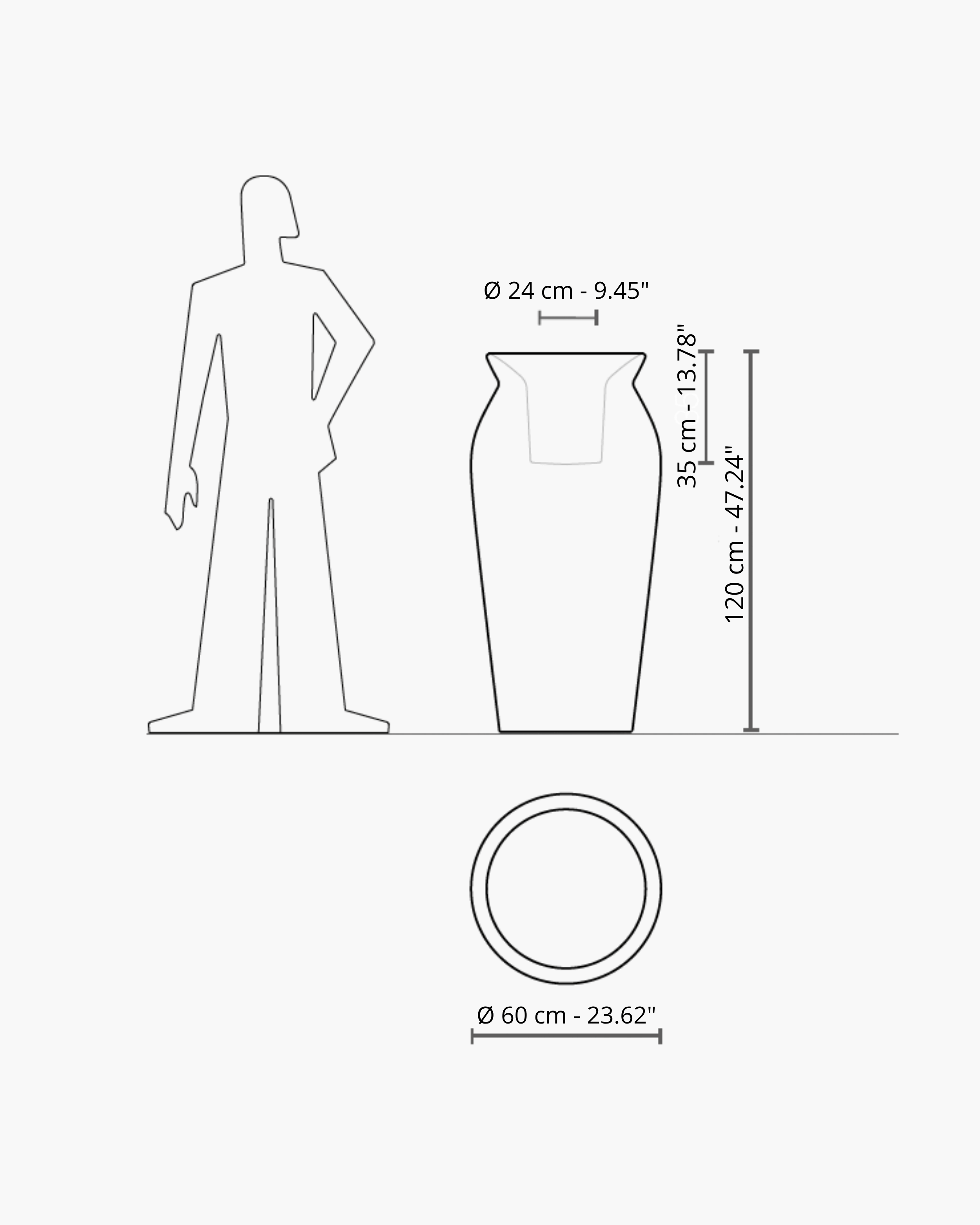 Apesar da sua silhueta graciosa, o vaso é fabricado em robusto polietileno, escolhido pela sua capacidade de resistir ao uso diário e a condições exteriores extremas. Resistente aos raios UV, o June mantém a sua beleza estação após estação. Totalmente reciclável e tingido em solução, representa uma escolha consciente para uma vida sustentável, tornando-se um favorito entre estúdios de design e arquitetos paisagistas que valorizam durabilidade aliada à elegância.