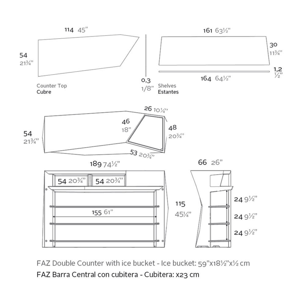 Рамон Эстев принимает приглашение Vondom, чтобы создать одну из самых важных коллекций бренда — FAZ, дань чистому дизайну и минималистскому стилю, который может элегантно обставить пространство. Коллекция FAZ состоит из нескольких декоративных элементов, таких как диваны, кресла, садовые лежаки и вазы, все они объединены одним стилем, характеризующимся геометрическими, квадратными, острыми формами. Vondom работает с матовым тиснённым полипропиленом и создает предметы мебели, которые являются настоящими произведениями искусства, элементами, способными превратить ваше жилое пространство и улицу в независимое царство: мир FAZ, где формы и цвета оживляют игру света и теней, превращая их в настоящих героев. Shop Decor предлагает оригинальную коллекцию барных стоек FAZ BARRA, которые можно комбинировать, создавая единую барную стойку, похожую на большую статую. Барная стойка FAZ BARRA CENTRO CUBITERA — центральная часть стойки с отверстием для ведра со льдом, кажется, вырезана прямо из минерала, превращая её в настоящий трон с оригинальной гранью, доступный в белом цвете. Сочетайте несколько элементов мебели FAZ, чтобы превратить ваши интерьеры в альтернативный и сказочный мир с другой планеты.