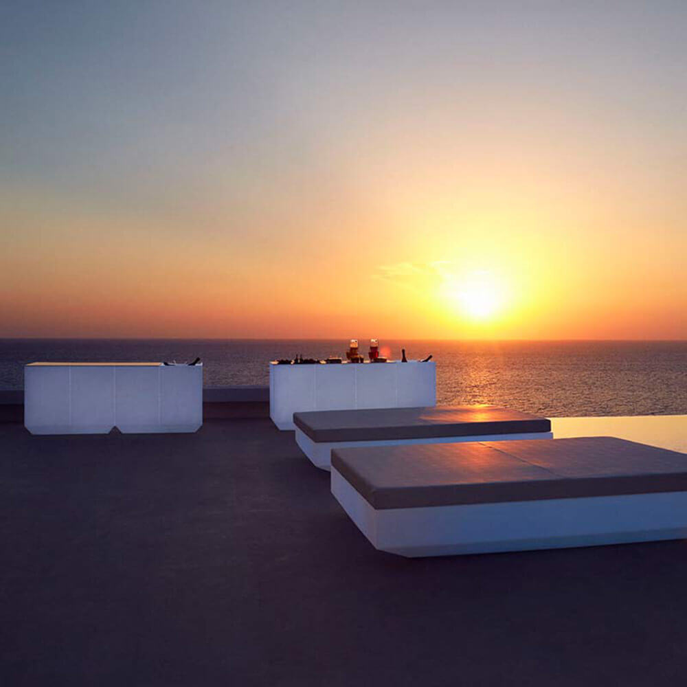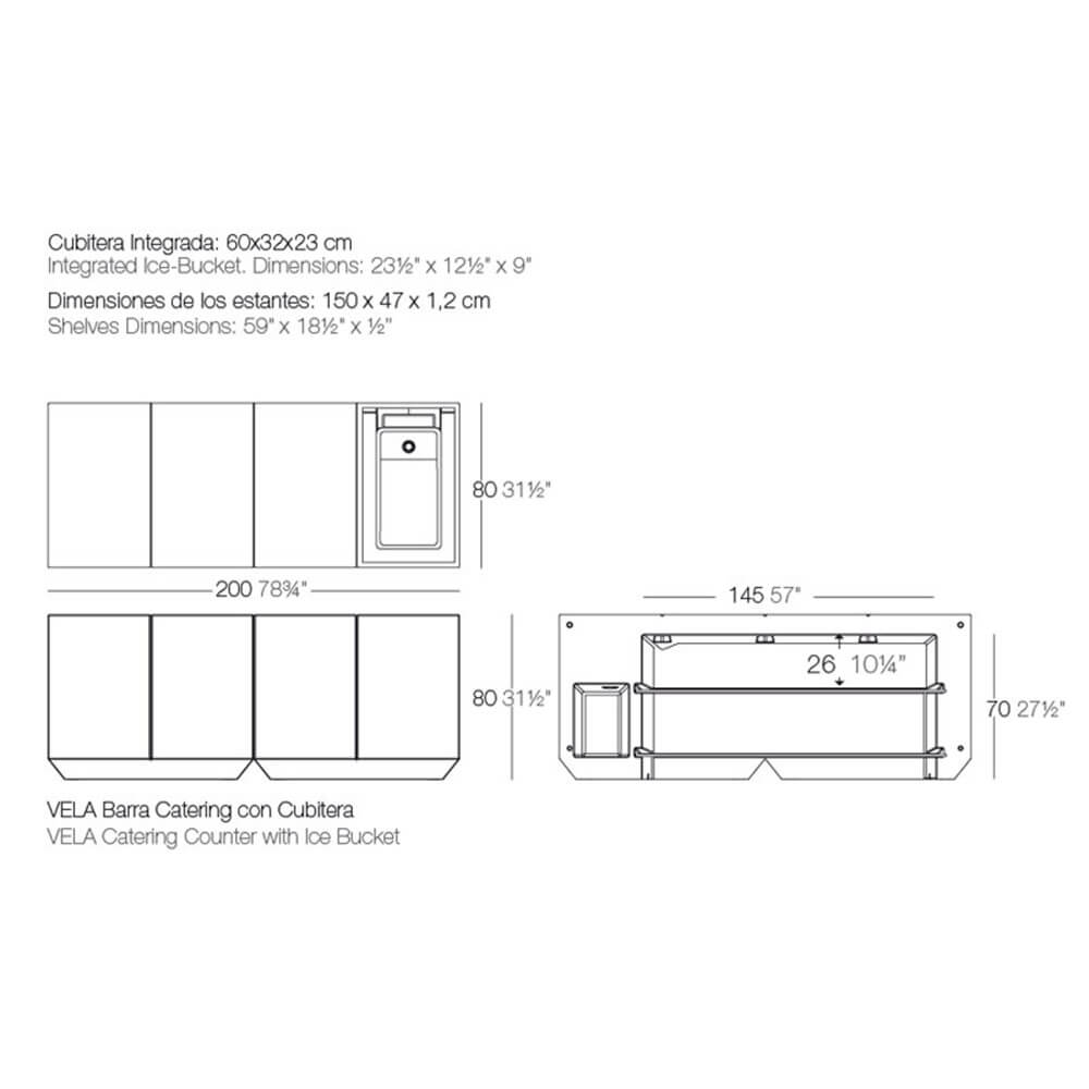Vondom вновь сотрудничает с Ramon Esteve, предлагая одну из самых элегантных и изысканных коллекций испанского бренда: VELA, богатую и разнообразную коллекцию элементов мебели, с чистым и лаконичным дизайном, который может обставить пространство со стилем и утонченностью. Все компоненты VELA характеризуются аккуратным, геометрическим стилем, который вырезает формы в четко очерченном и аккуратном пространстве, создавая сбалансированный и легкий эффект в интерьере. Сочетайте все компоненты VELA, чтобы создавать современные внутренние и наружные пространства и атмосферы. Shop Decor предлагает уличную барную стойку с ведром для льда VELA BARRA CATERING CUBITERA, элемент, который можно использовать как самостоятельный предмет мебели, так и в сочетании с другими аксессуарами коллекции. Барная стойка включает набор из 2 внутренних полок из HPL и оснащена 8 роликами с тормозом, что облегчает перемещение стойки туда, где вам удобно. Матовый тисненый полипропилен легко моется и гарантирует максимальный комфорт и высокую устойчивость к непогоде. Позвольте себе окунуться в эфирный мир VELA.