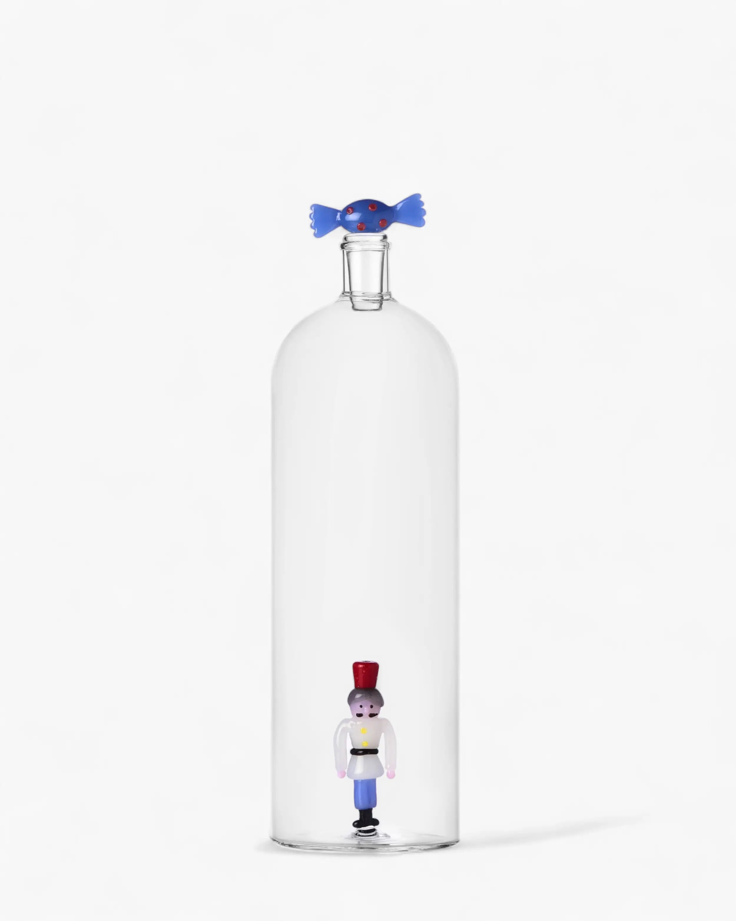 Ichendorf Schiaccianoci bottle with candy & little soldier привлекает любителей дизайна, коллекционеров и всех, кто ищет изысканные идеи подарков или домашние аксессуары. Международно признанный, он больше, чем просто кувшин: это часть повествовательного дизайна, сочетающая традицию Щелкунчика с современным стеклодувным искусством. Вручаемый в подарок, он несет радость и мастерство, предназначен оставаться частью дорогих воспоминаний и коллекций на долгие годы. Подписанный Alessandra Baldereschi, он является памятным предметом, объединяющим воображение и вечную элегантность.Ichendorf Щелкунчик бутылка синий конфета и маленький солдат