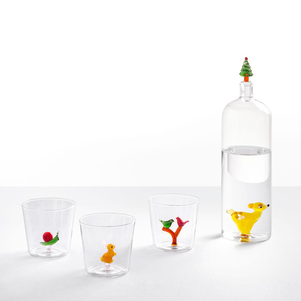 The Ichendorf Woodland Tales bottle Lonely Fawn & Wish Tree is a poetic encounter between design and storytelling. Conceived by Alessandra Baldereschi, this handmade glass bottle brings a scene from the forest to your table: a tiny fawn resting beside a delicate green tree, captured within crystal clarity. It is more than a carafe: it’s a piece of glass art that celebrates nature’s tranquility and the purity of Italian craftsmanship.