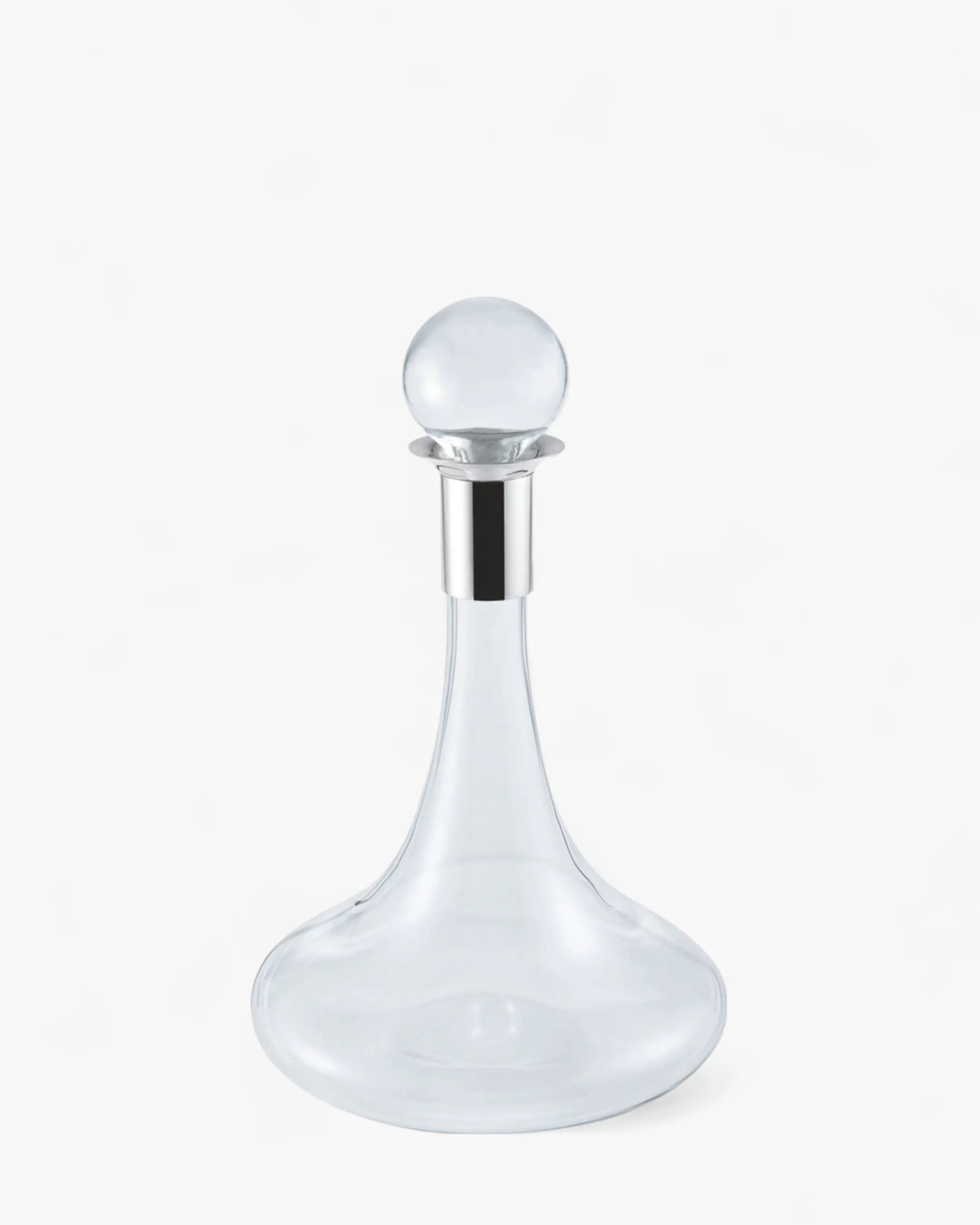 Широкое основание способствует насыщению кислородом, а суженная горловина улавливает букет. Акценты с серебряным покрытием отражают свет, усиливая скульптурное присутствие декантера на столе. Каждая кривая имеет свое назначение — от эргономичной горловины, удобно ложащейся в руку, до носика, который направляет налив без капель.
