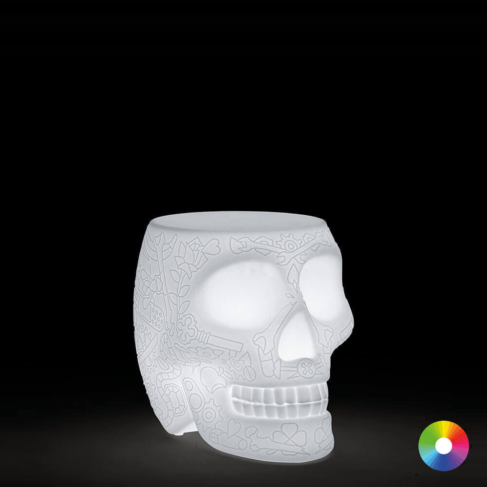 Qeeboo Mexico табурет и приставной столик в форме черепа с уличным LED
