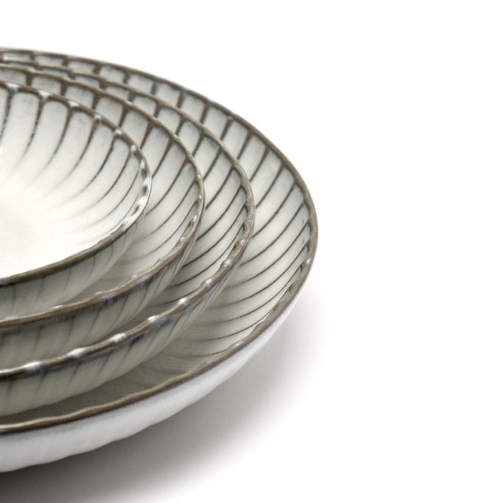 The Inku deep plate by Serax is defined by its gently elevated edge and tactile glaze, both reminiscent of organic forms like shells or rippling water. Each piece carries delicate ridges that capture light, adding quiet movement to the surface. Dishwasher safe and intended for alimentary use, the design unites durability with aesthetic softness. For those searching for a serax inku deep plate green, it offers an interpretation of ceramic art that feels grounded yet refined — robust enough for everyday meals, delicate enough for special occasions.