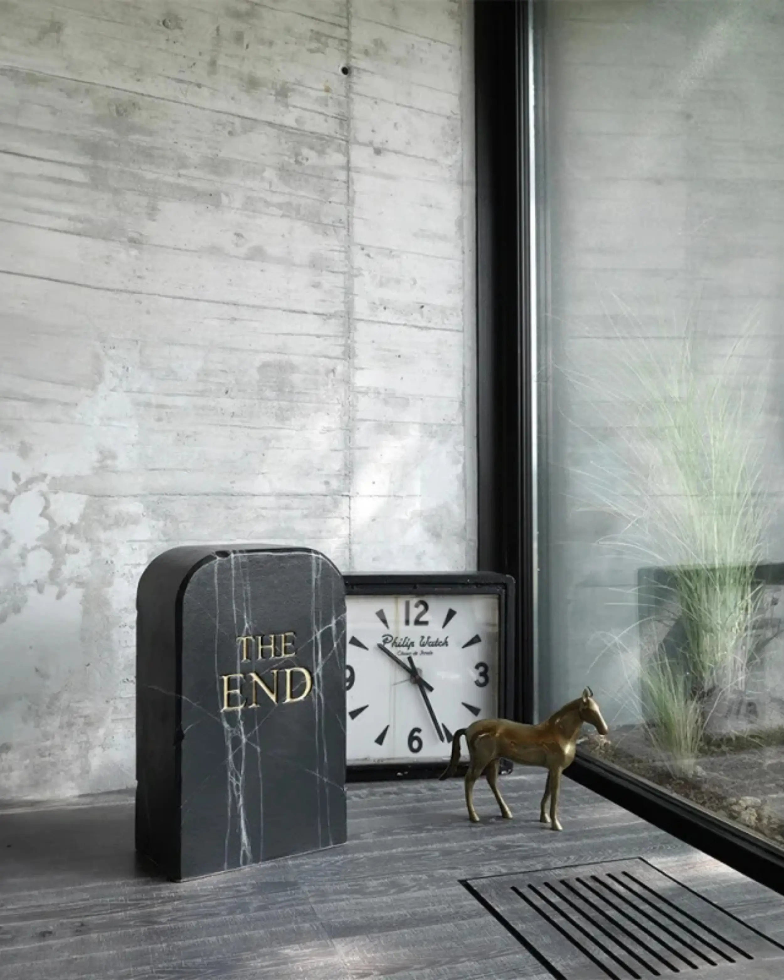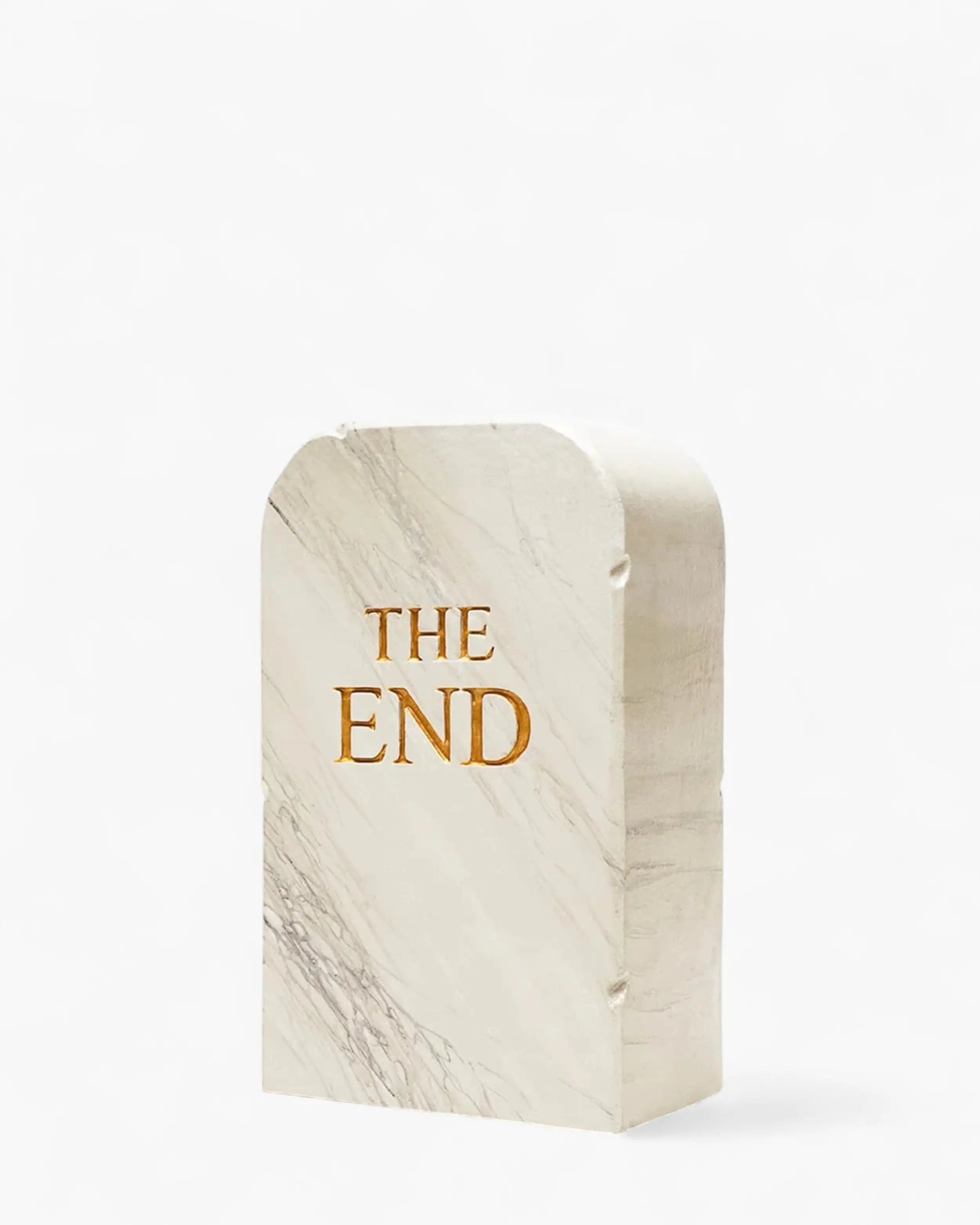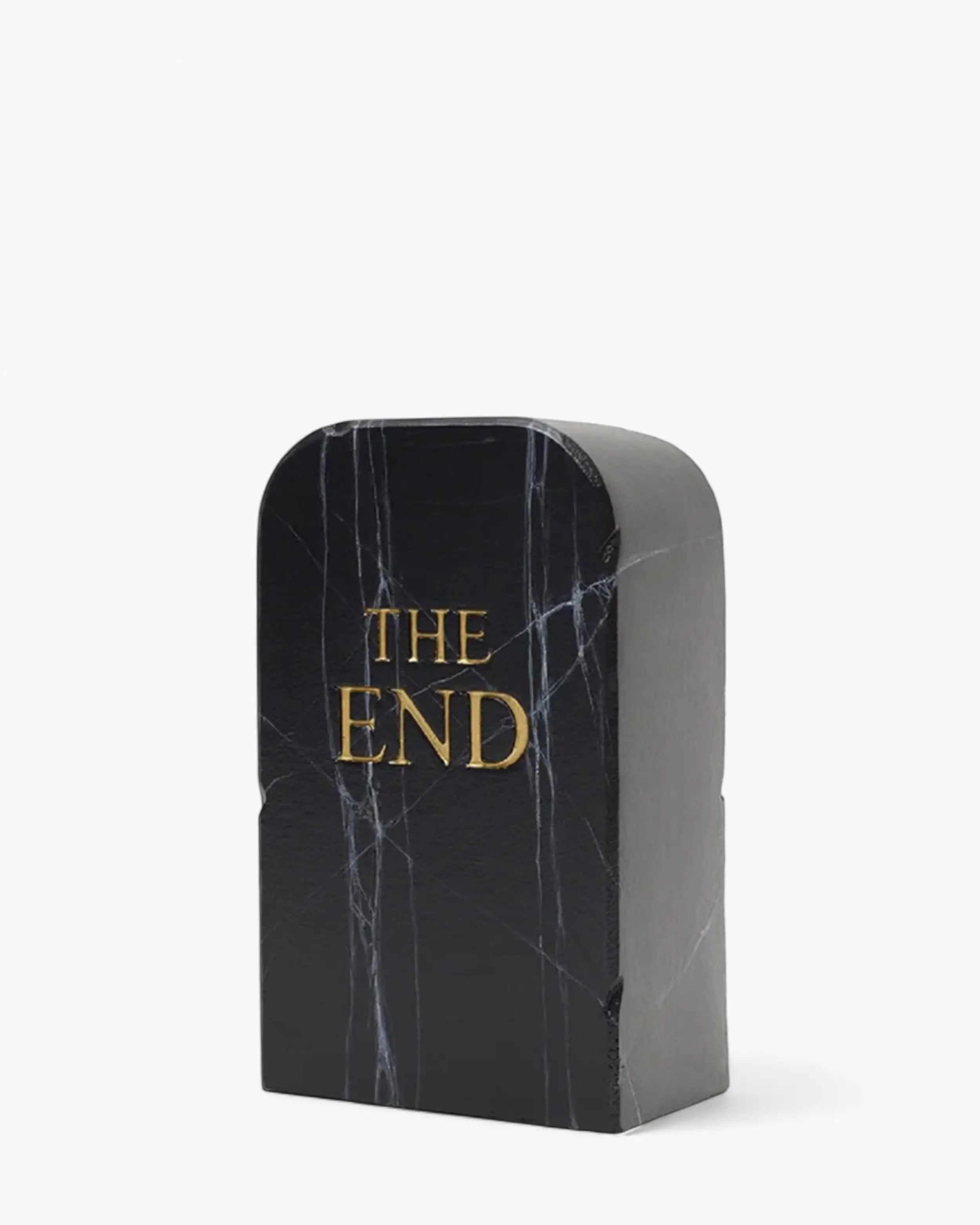 Мало какие объекты так явно воплощают иронию, как сиденье Gufram The End, созданное Маурицио Каттеланом и Пьерпаоло Феррари для Toiletpaper. Выполненное в виде искусственного мраморного надгробия, это радикальное полиуретановое сиденье с поразительной прямотой заявляет о конце самого Gufram. Однако, в типичной для анти-дизайна манере, предполагаемая финальная глава не торжественна, а игрива: надгробие мягкое, легкое и полностью функционально как табурет. Парадокс заключается в приглашении сесть на погребальный памятник, превращая траур в юмор, жесткость — в мягкость, а серьезность — в сатиру.