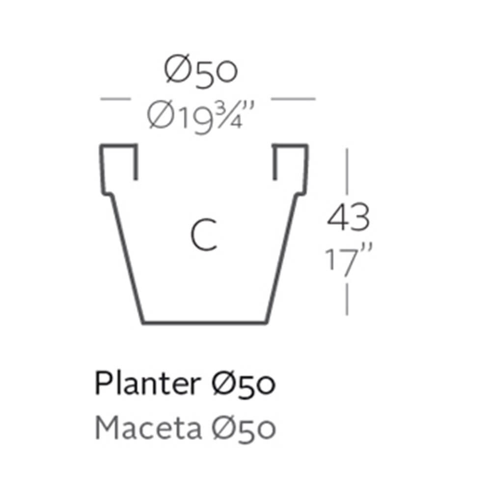 Студия Vondom разрабатывает для того же испанского бренда коллекцию ваз для использования на открытом воздухе, которая хочет выделиться. Все эти предметы изготовлены из полипропилена, 100% перерабатываемого материала, идеально гармонирующего с окружающей природой. Система самополива сохранит ваши растения здоровыми и идеально увлажненными, чтобы гарантировать прекрасные моменты отдыха в ухоженном саду. Shop Decor предлагает вазы коллекции Vondom в следующих цветах: белый, черный, экрю, бронзовый и красный. Ваза MACETA доступна в трех разных размерах, высотой 52 см, 104 см или 43 см, поэтому каждое место на открытом воздухе будет иметь возможность иметь дизайн в своем воссоединении с природой. Эта ваза Maceta имеет диаметр 50 см и высоту 43 см.