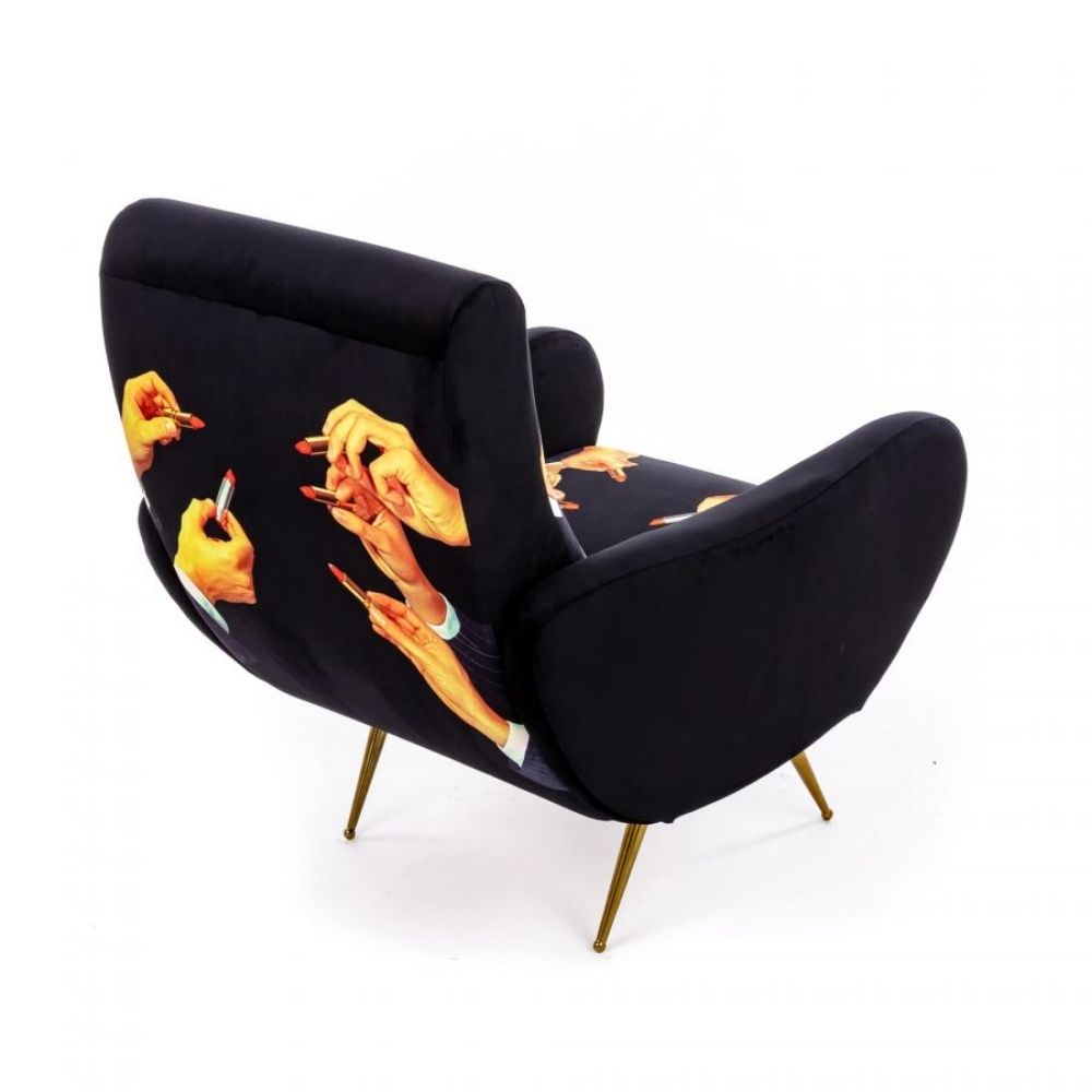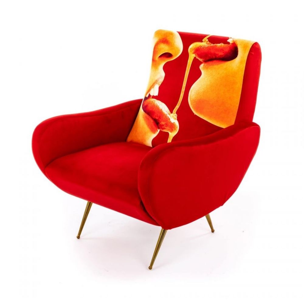 The Seletti Toiletpaper Armchair embodies the disruptive creativity of Maurizio Cattelan & Pierpaolo Ferrari, two masters of irony who have redefined contemporary aesthetics. With its irreverent lipsticks and many other patterns, this padded armchair becomes an icon of pop surrealism, turning the ordinary act of sitting into an immersive artistic experience. More than a functional object, it’s a conversation piece, emblem of boldness and self-expression. Within the playful yet refined world of Toiletpaper Home, imagination merges with comfort, making this armchair the perfect manifesto for those who love to surround themselves with objects that defy logic yet exude style.