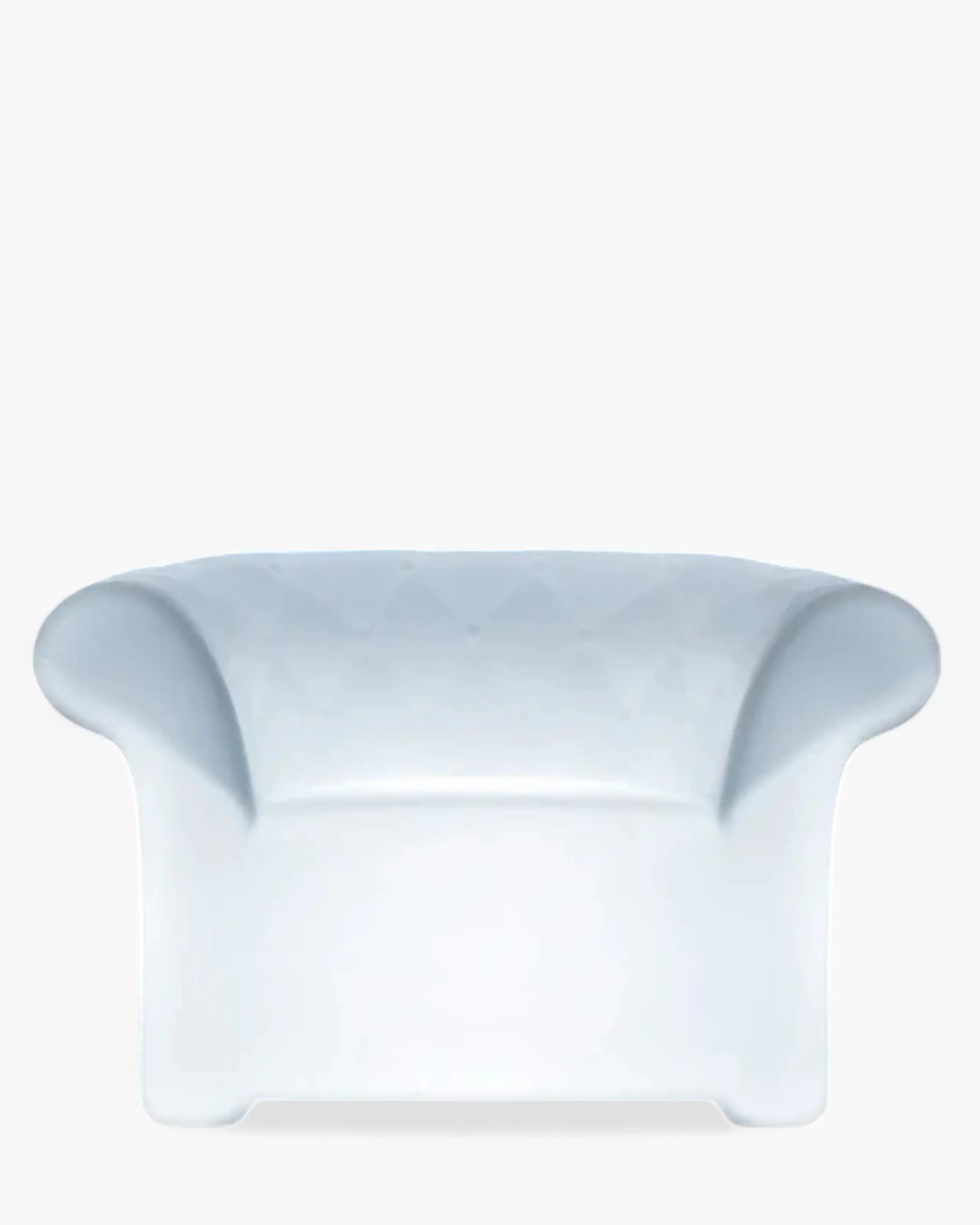 在 Serralunga Sirchester 帶燈扶手椅 中,Matteo Bazzicalupo & Raffaella Mangiarotti 將經典輪廓轉化為光輝雕塑。白天它是精緻的戶外座椅;夜晚則成為發光的存在,將 花園、露台 和 接待休息室 變成光影為主角的戲劇舞台。作為 Sirchester 系列 的一部分,它融合了雕塑設計與功能性。