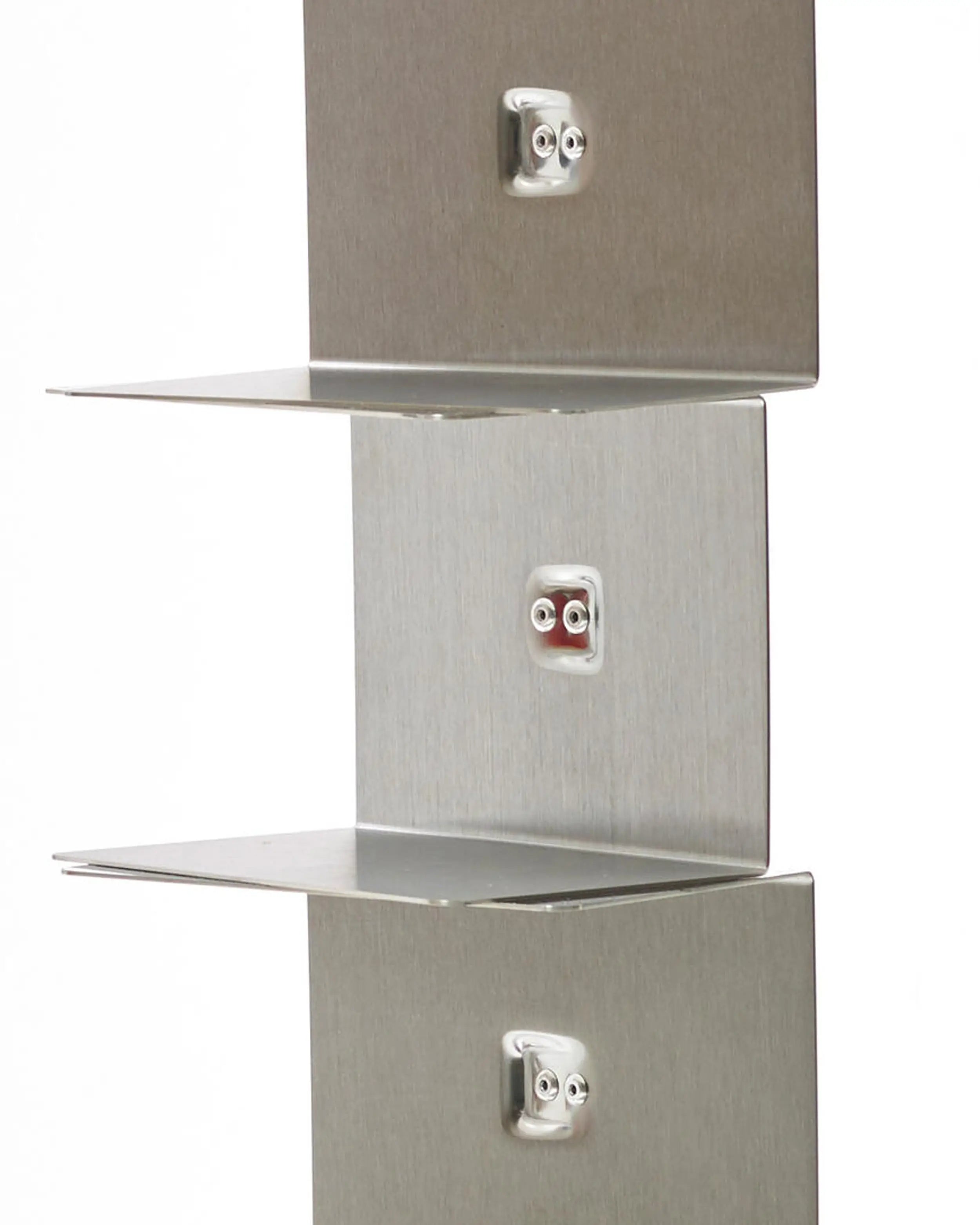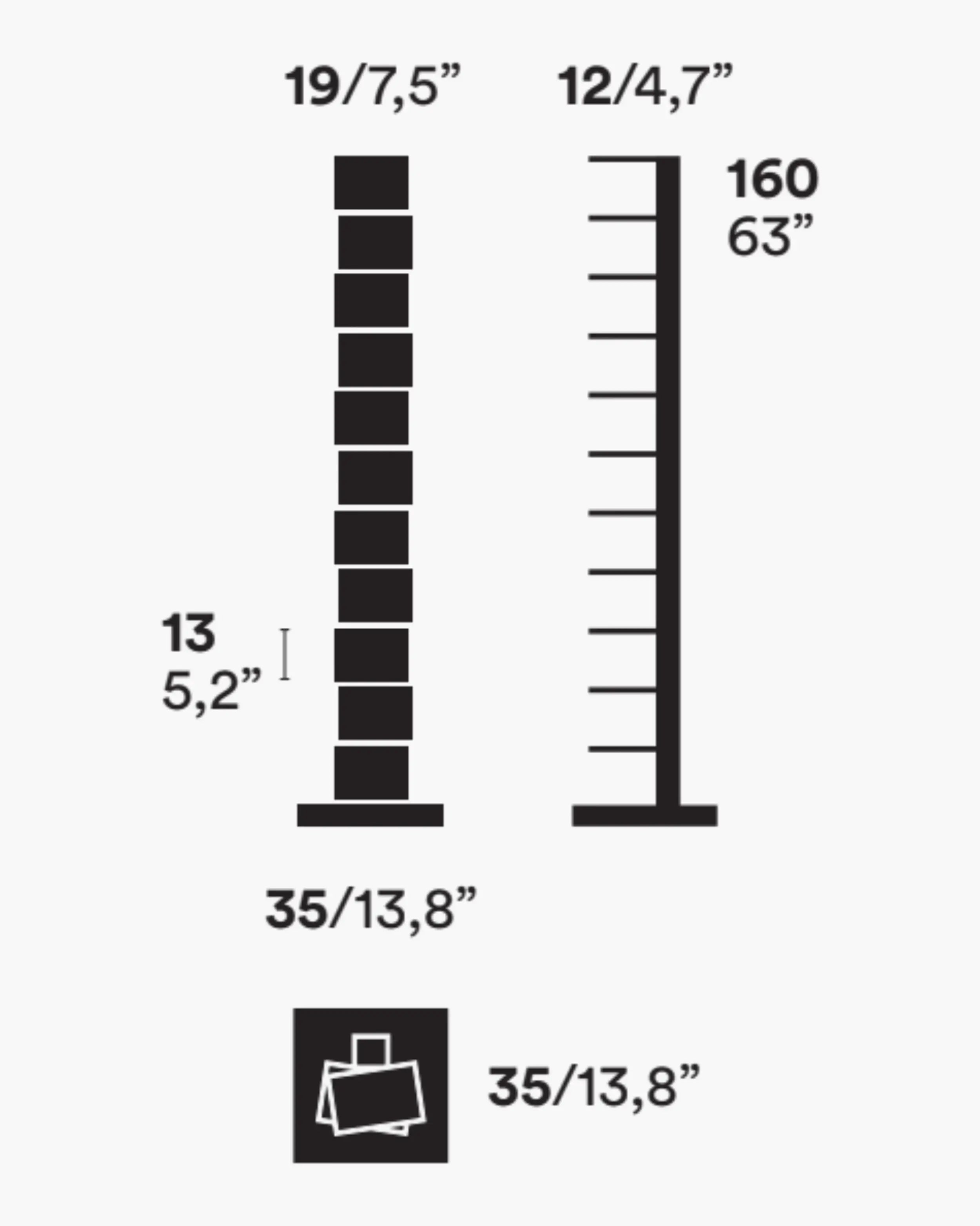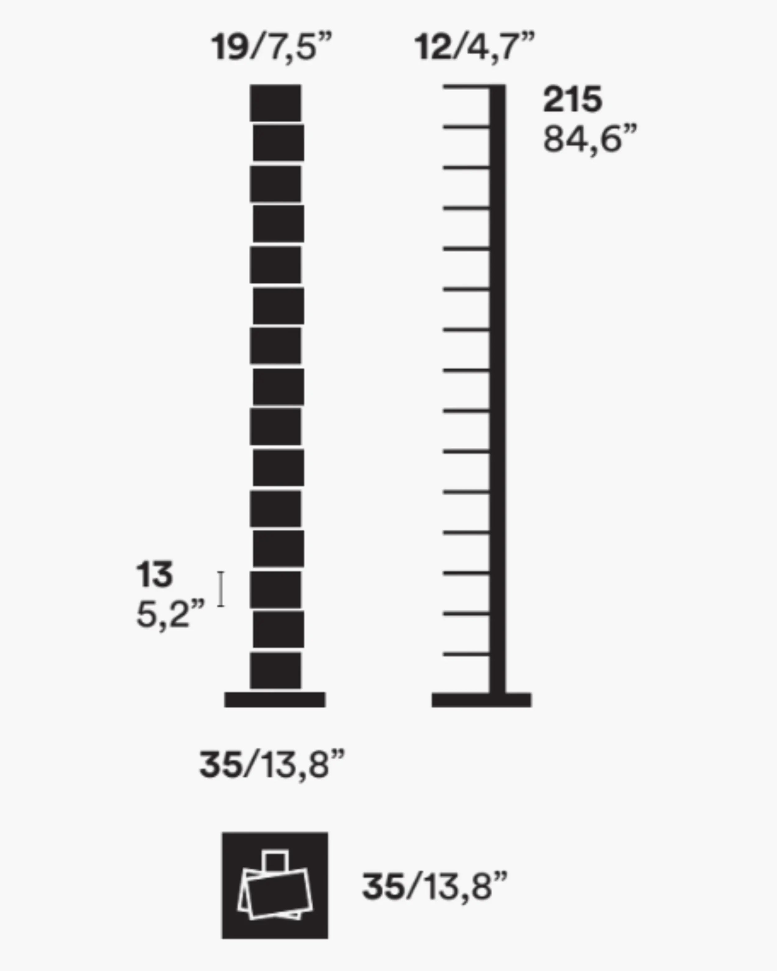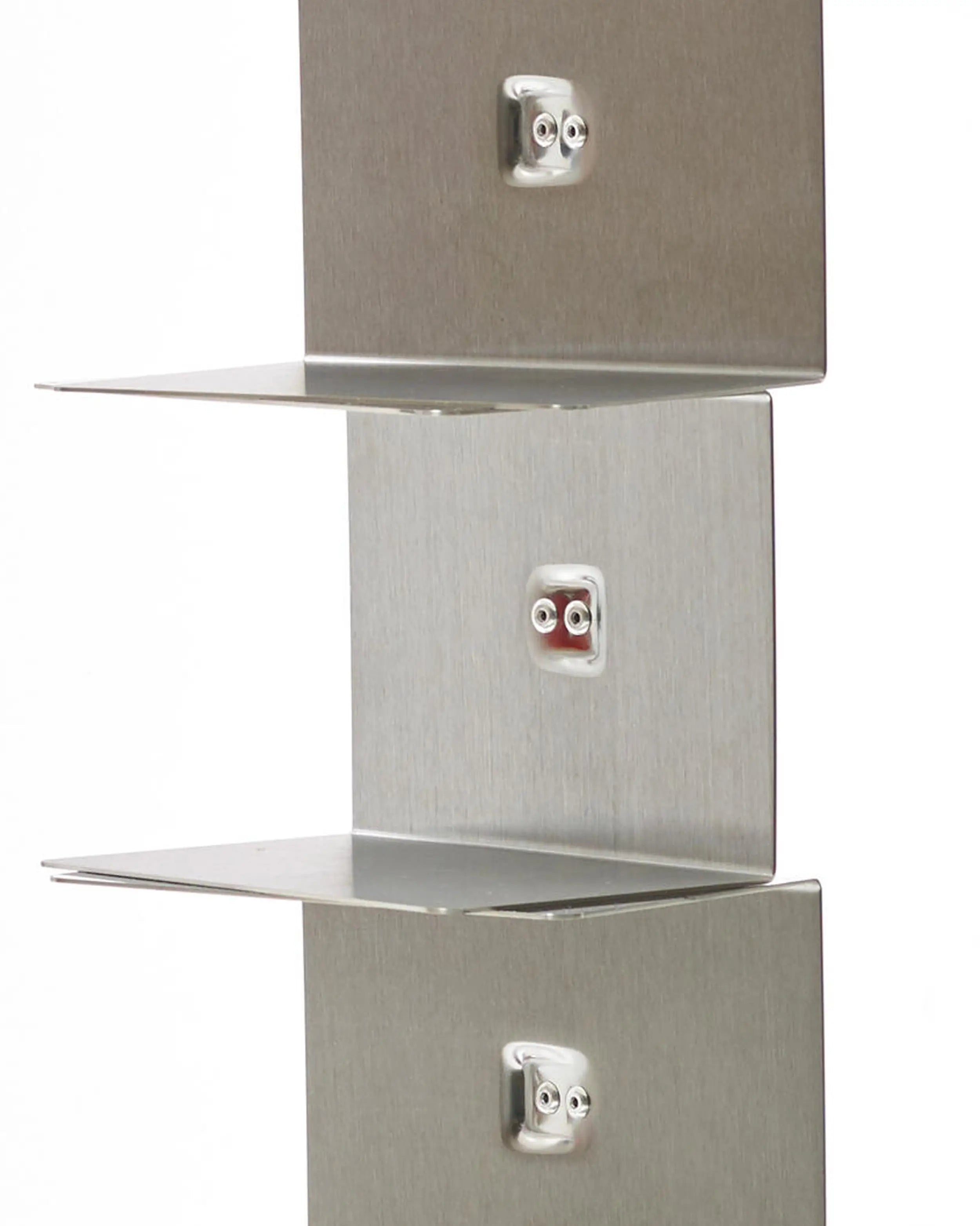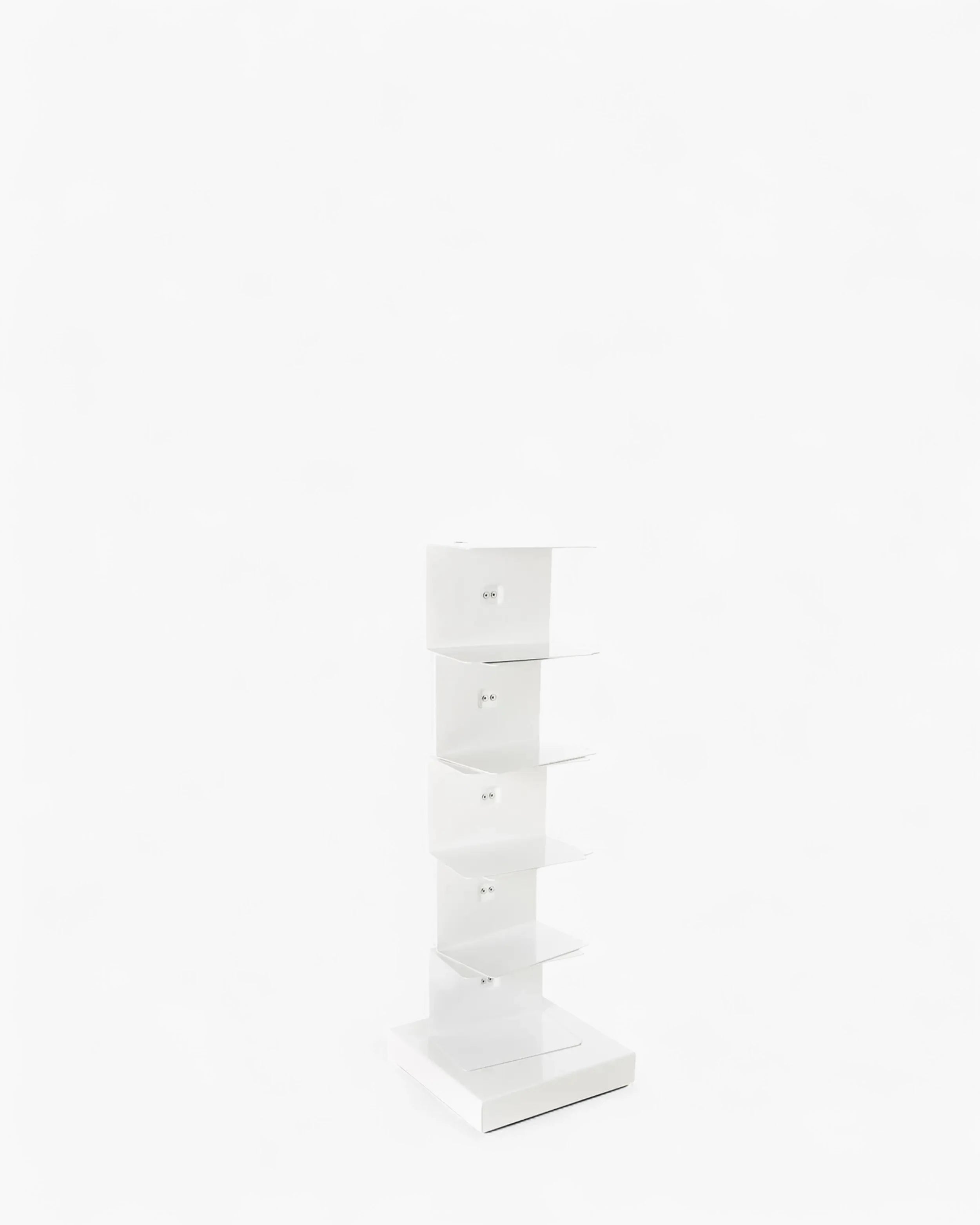 獨立書櫃,鋼柱隱藏了一系列薄層架,既能承載書堆又保持輪廓纖細。產品為組裝式,配有可調腳以適應不平整地面,並設計用於室內。儘管外觀輕盈,容量卻相當慷慨:約可容納 35 本書,每層最大承重 2 公斤,讓書堆長時間保持整齊安全。