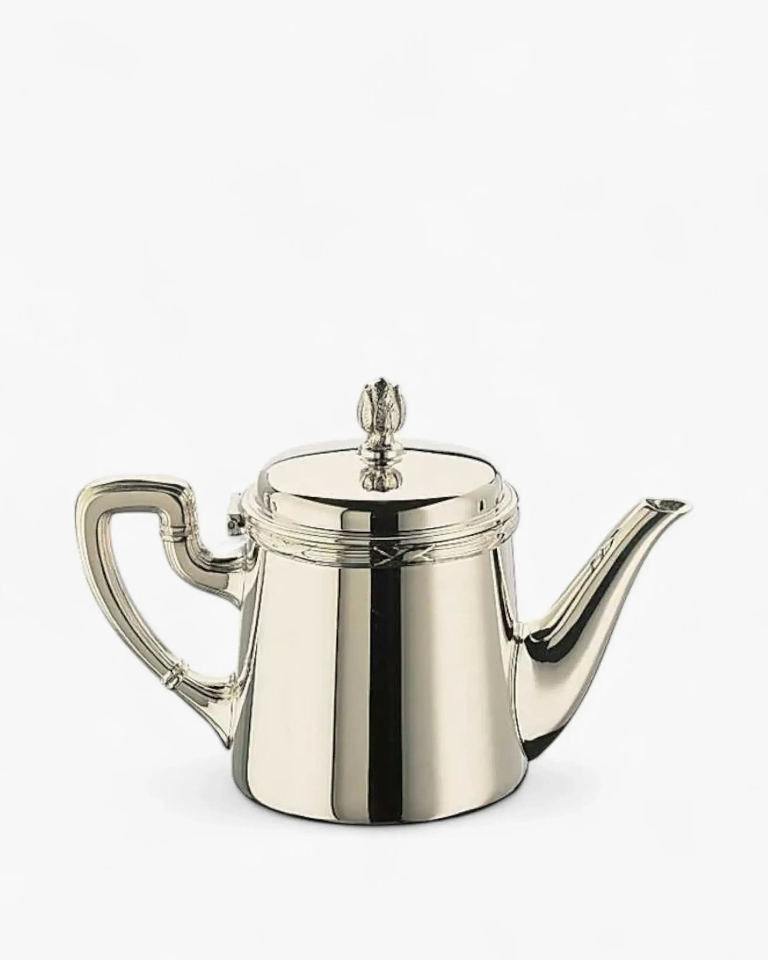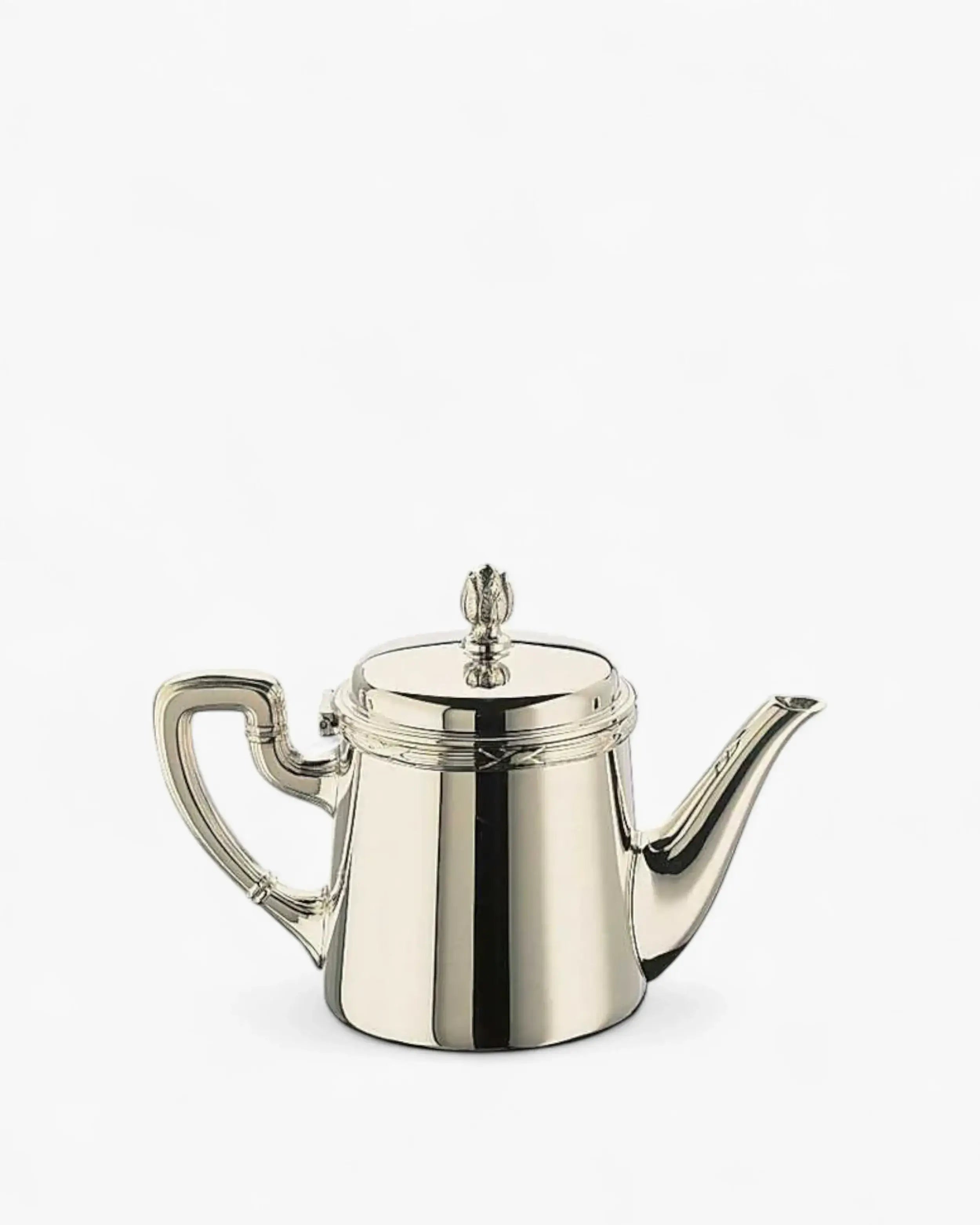 由最優質的阿爾帕卡銀製成,並以驚人的銀鍍鎳塗層完成,這款絲帶茶壺兼具耐用性和光輝。其優雅的形狀、光滑的表面和精心設計的壺嘴確保了平穩、精確的倒茶。配有符合人體工學的手柄,便於服務,容量達30毫升,兼具實用性和永恆的美感。設計用於食品使用,它是精緻品味和傳承的象徵。