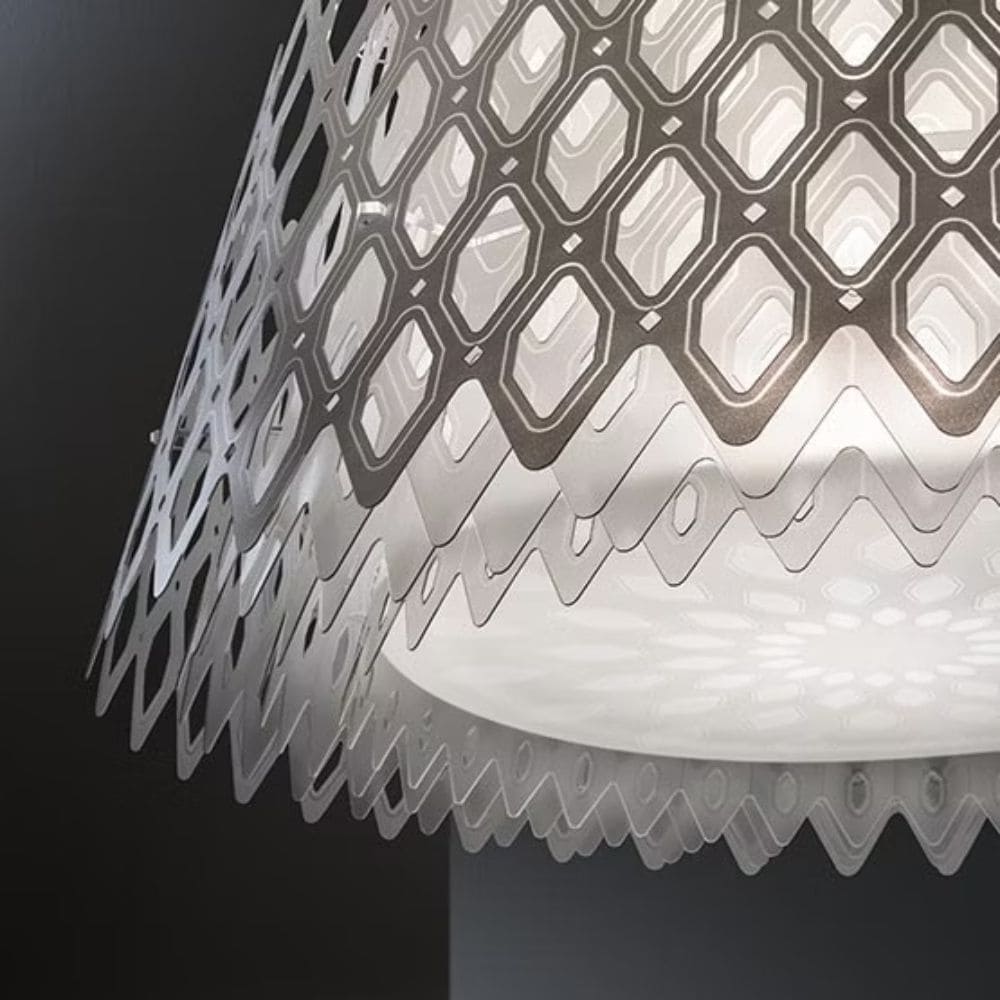 透過 Colombina 盤和 Charlotte 落地燈等燈光設計,展現 Doriana e Massimiliano Fuksas 的藝術魅力。