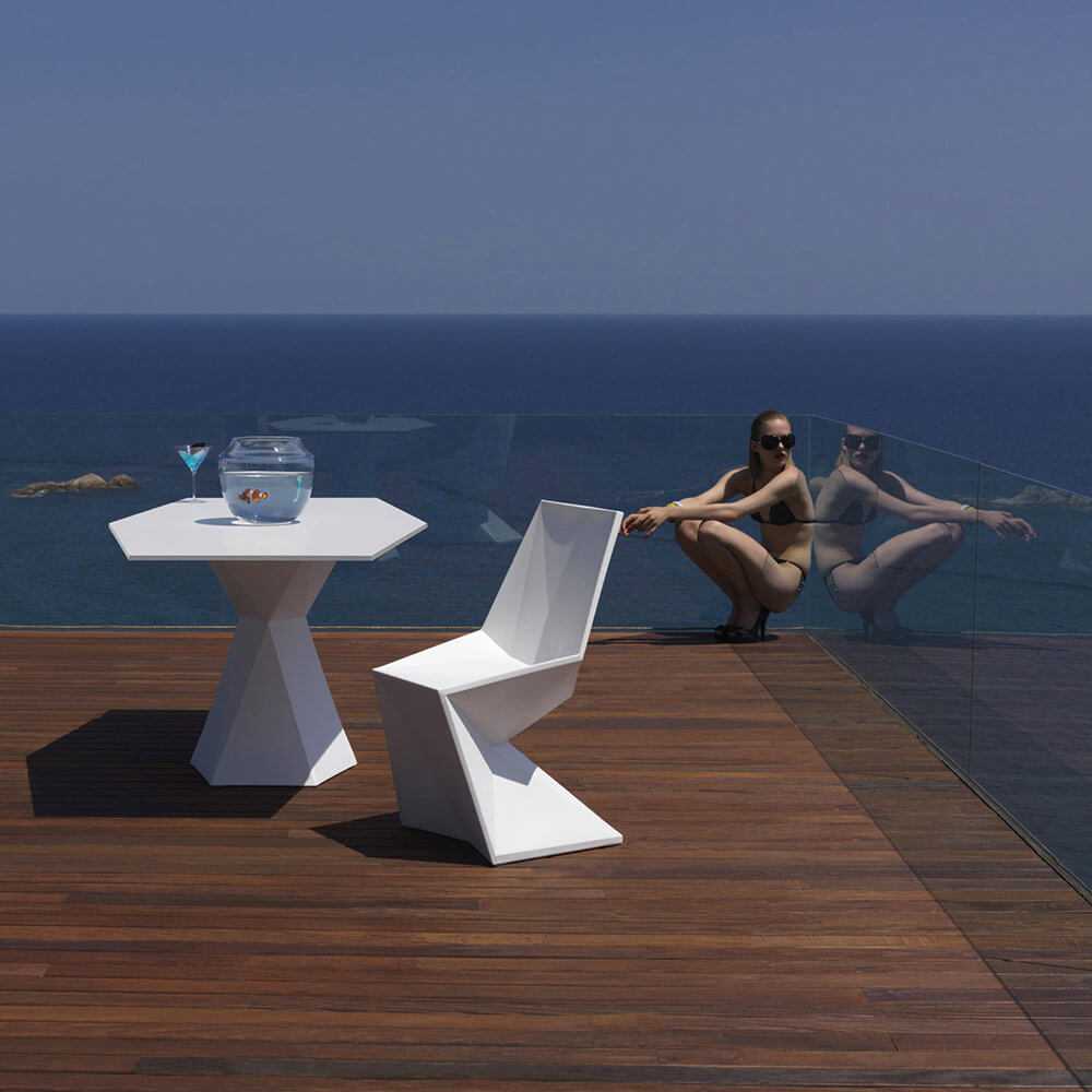 VERTEX 是設計師 Karim Rashid 專為Vondom設計的超現代配件的動態系列。該系列產品的特點是絕對原創,同時又具有堅固而優雅的設計。 VERTEX系列由:SILLA椅子、MESA REDONDA桌子、MESA CUADRADA桌子和MESA HEXAGONAL桌子組成。 Shop Decor推出的桌 VERTEX MESA REDONDA 由不透明聚丙烯製成,透過滾塑方法製成,具有圓形 HPL 表面。其尺寸為:直徑80cm,高72cm。這款桌子的設計將不同的棱角形狀與現代風格相結合,創造出令人驚嘆的線條。