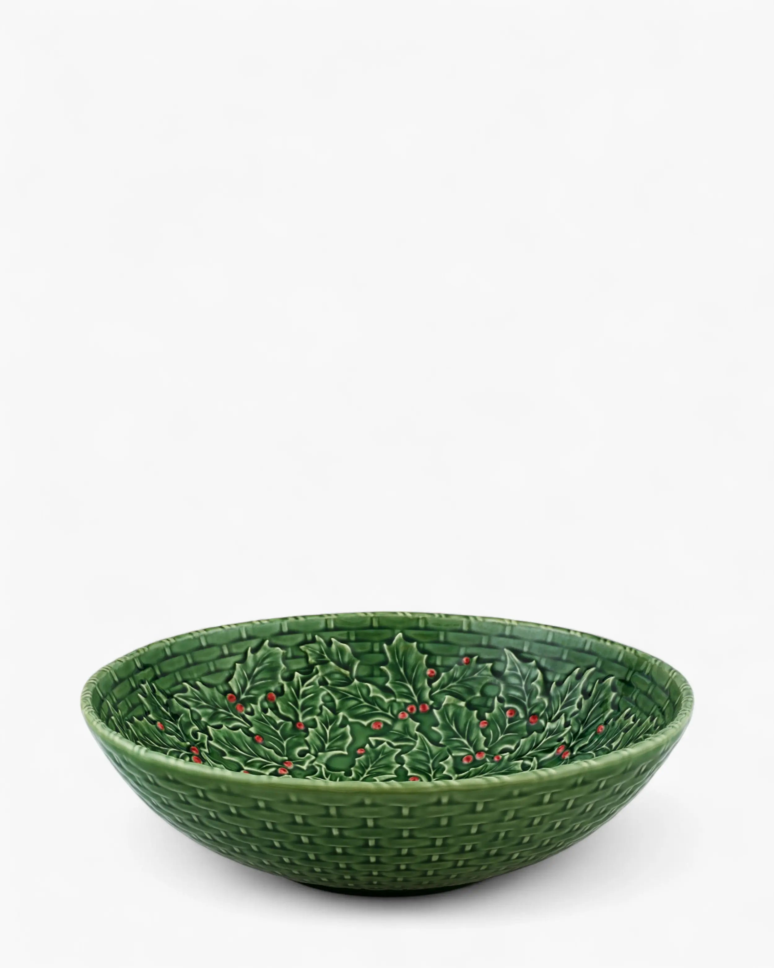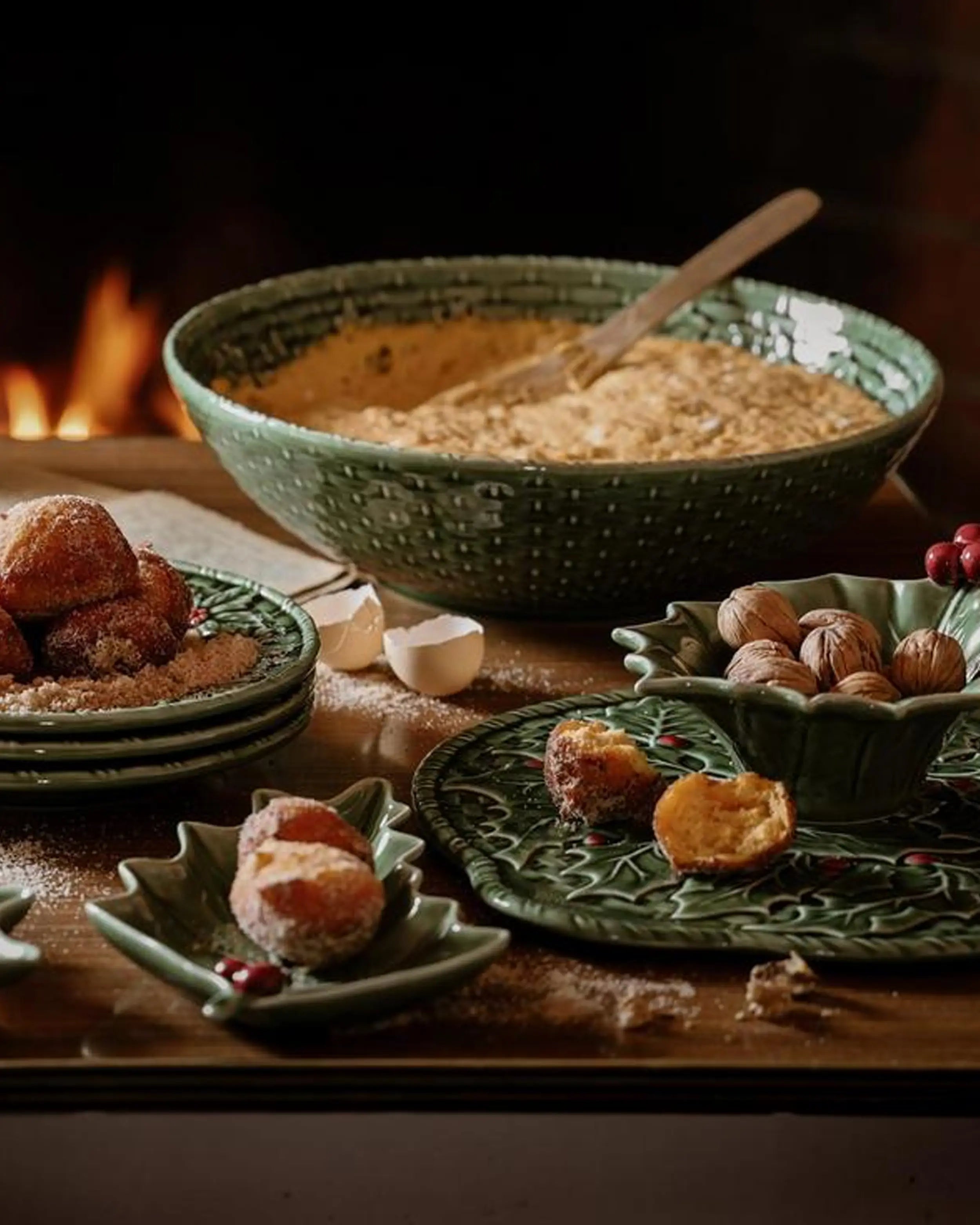 Bordallo Pinheiro Holly/Azevinho 沙拉碗 將季節性故事轉化為日常功能。雕刻的冬青葉和光滑的漿果在寬大的輪廓上波動,即使是簡單的綠葉也成為餐桌的焦點。手繪細節和光澤釉面增添深度,工藝巧思悄然提升每日用餐體驗。