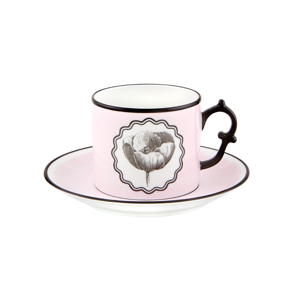Herbariae 粉紅茶杯和茶碟,由 Christian Lacroix 為Vista Alegre設計。粉紅色的 Herbariae 茶杯和茶碟,精緻地裝飾著花朵和黑色邊框,由於顏色的對比,給人一種獨特的優雅感,是讓您的餐桌獨一無二的理想元素。 Herbariae系列從五種花卉(罌粟、水仙、蓮花、大麗花和薊)中汲取靈感,使它們成為整個系列的主角,以古代植物標本館的風格代表它們,並將它們與柔和的色彩相結合,從而喚起一種水彩效果。探索整個 Herbariae 系列,讓每個場合都獨一無二。