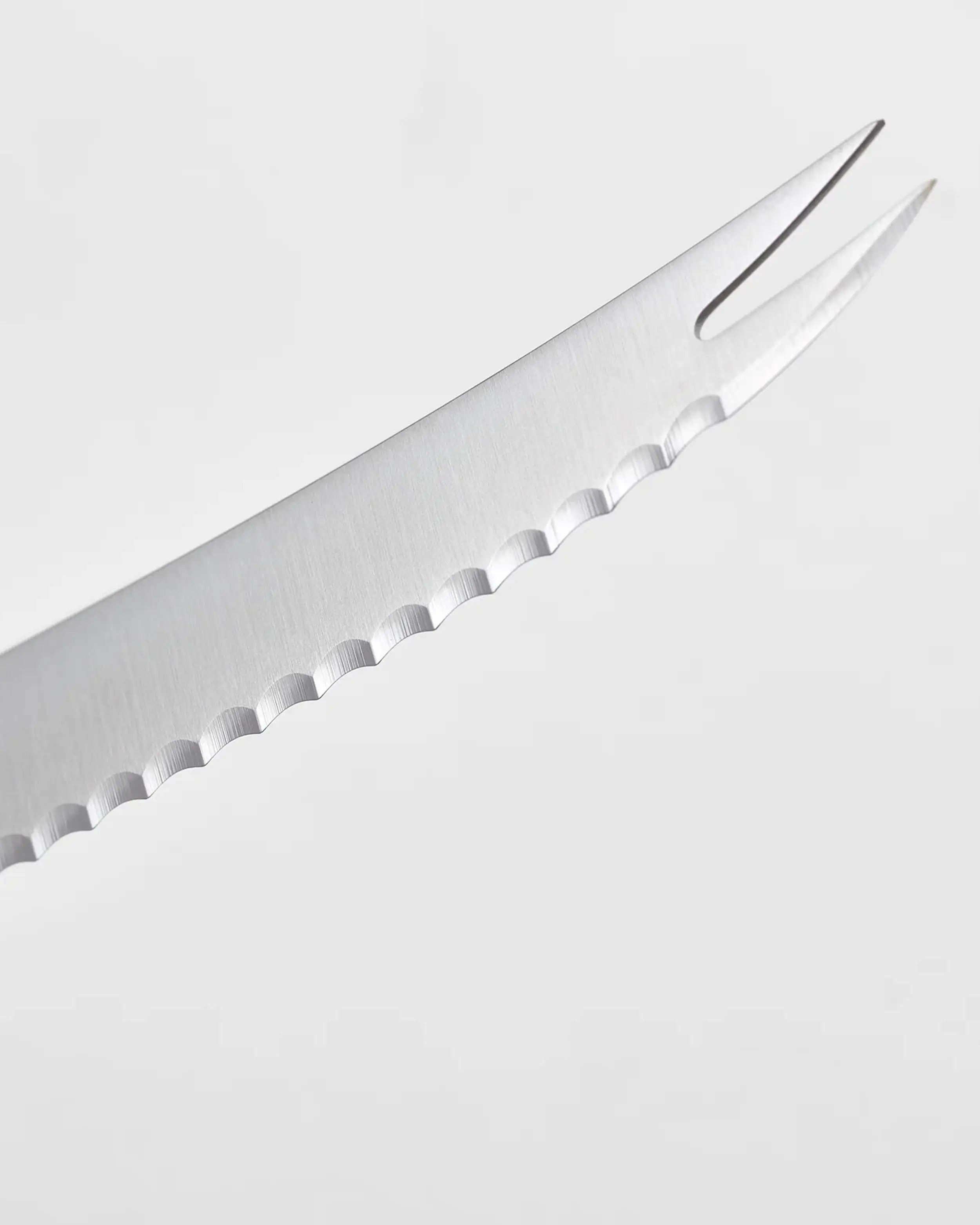 這把刀產自德國索林根——全球刀具卓越的標杆,採用優質鋼材鍛造,確保持久鋒利與可靠。由Wüsthof設計,配備實用的叉形刀尖,讓您輕鬆將切片從砧板直接夾起並盛盤。它不僅是切割工具,更是上菜工具。