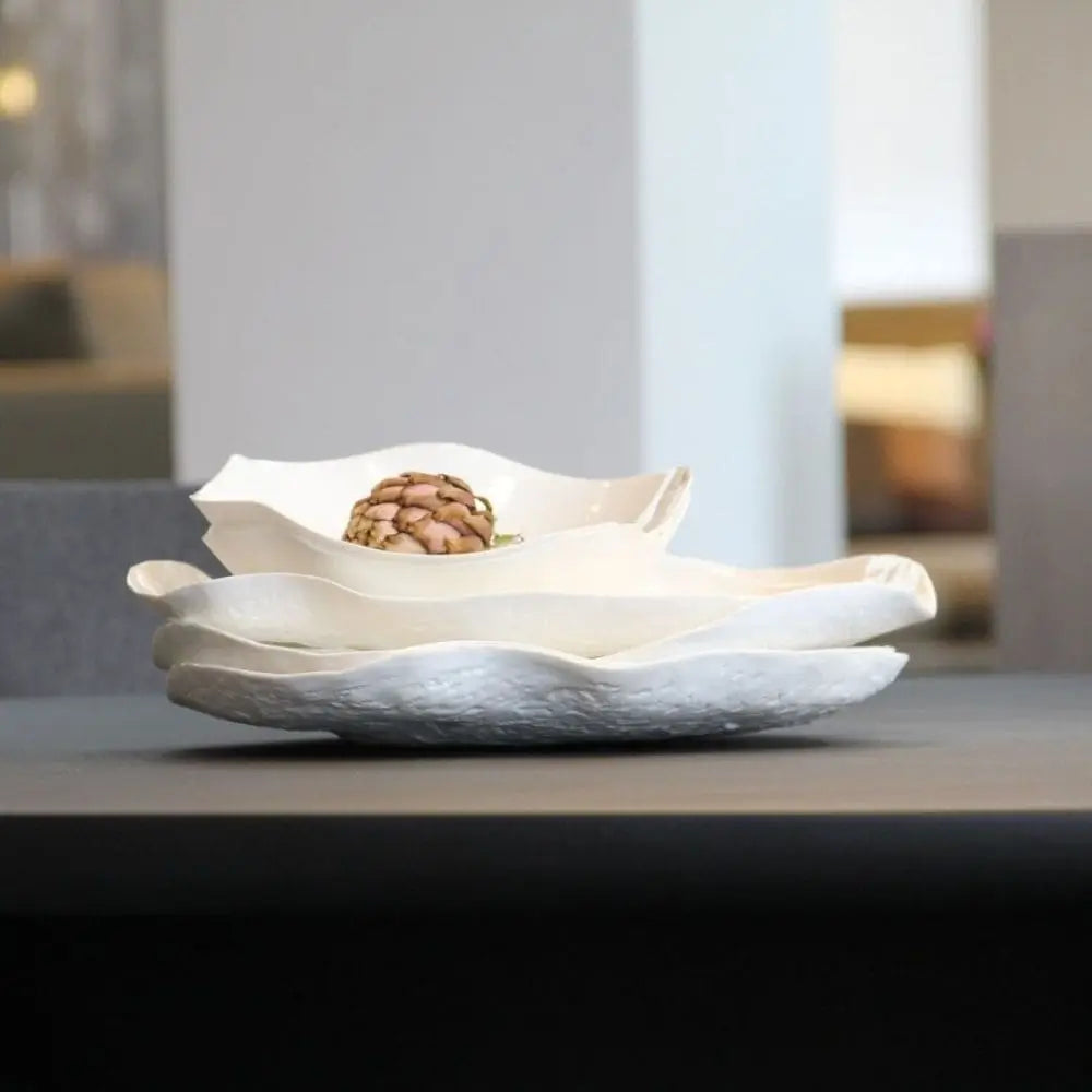 這款不規則葉形盤為餐桌帶來創意與寧靜。無論用於極簡風格的室內設計或高級餐廳,它以低調的優雅吸引目光,而非奢華浮誇。Roos Van De Velde 藝術餐具系列與玻璃、木材或金屬完美融合,創造出觸感豐富的質地互動。其細長的輪廓鼓勵線性擺盤——非常適合以自然優雅的方式呈現美食、壽司或精緻品嚐菜單。
