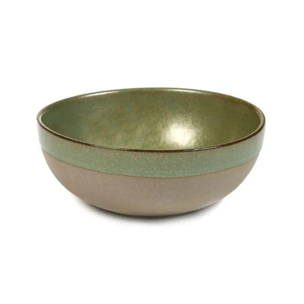 Serax Surface 圓形碗 迷彩綠 由 Sergio Herman 設計,捕捉了廚師創意世界的觸感魅力與深度——一個設計與美食完美融合的世界。作為 Surface 系列 的一部分,這件作品慶祝對比:生動的質地與光滑的釉面,自然的不完美與精緻的工藝。每只碗都是 Herman 烹飪哲學的反映——根植於北海的粗獷之美與手工設計的靜謐優雅。
