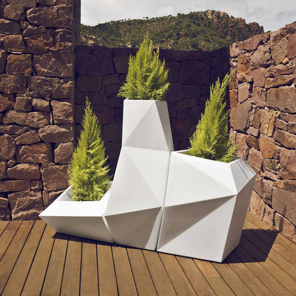 Ramon Esteve 接受 Vondom 的邀請,打造了品牌最重要的系列之一 FAZ,向純粹的設計和精緻的簡約風格致敬。 FAZ系列由沙發、椅子、花園沙發床和花瓶等多種裝飾元素組成,所有元素都具有相同的風格,以幾何、方形、尖銳的形狀為特徵。 Vondom使用啞光壓花聚丙烯,獲得了真正的藝術作品的家具元素,這些元素可以在獨立的統治下改變您的生活空間和戶外活動:FAZ 的世界,形狀和顏色為光影遊戲賦予生命,並將它們轉化為真正的主角。 Shop Decor推出原始系列 FAZ MACETEROS,可以將它們組合在一起打造出一個看起來像大雕像的花瓶。 FAZ MACETEROS BAJA 花瓶高 42 厘米,似乎是直接用礦物雕刻而成,將其轉變為帶有原始刻面的真正王座,有白色、黑色、紅色、青銅色和米色可供選擇。結合多種 FAZ 家具元素,將您的氛圍轉變為來自另一個星球的另類夢幻世界。